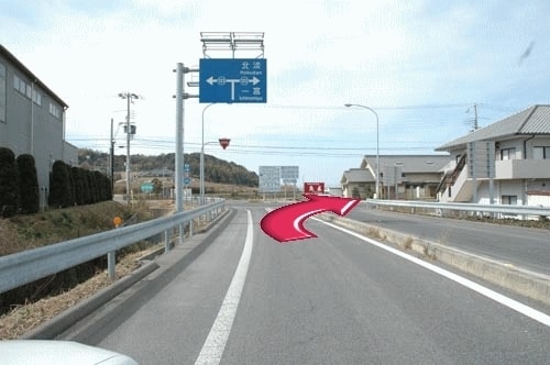 1.北淡ICを降りて右折、次の信号を左折