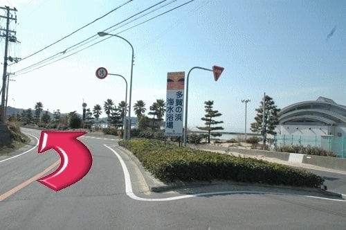 海岸線にそって、10分ぐらいで、郡家の信号を直進